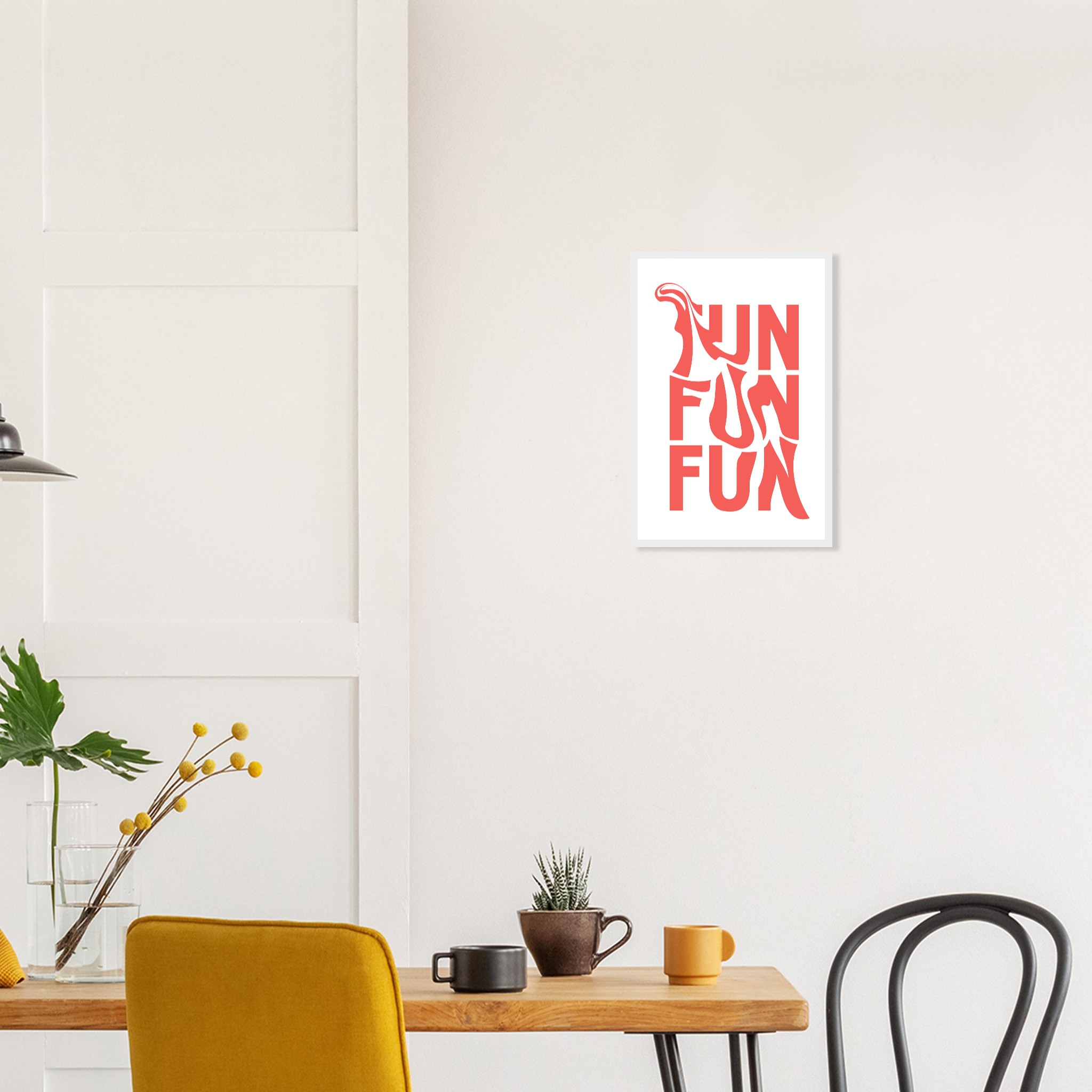 Infuse your space with a playful spirit with our ‘FUN’ Typography Art Print. This unique design, featuring dynamic coral-red lettering against a crisp white background, brings an energetic and modern touch to any room. It’s the perfect statement piece for those who love to celebrate joy and creativity.