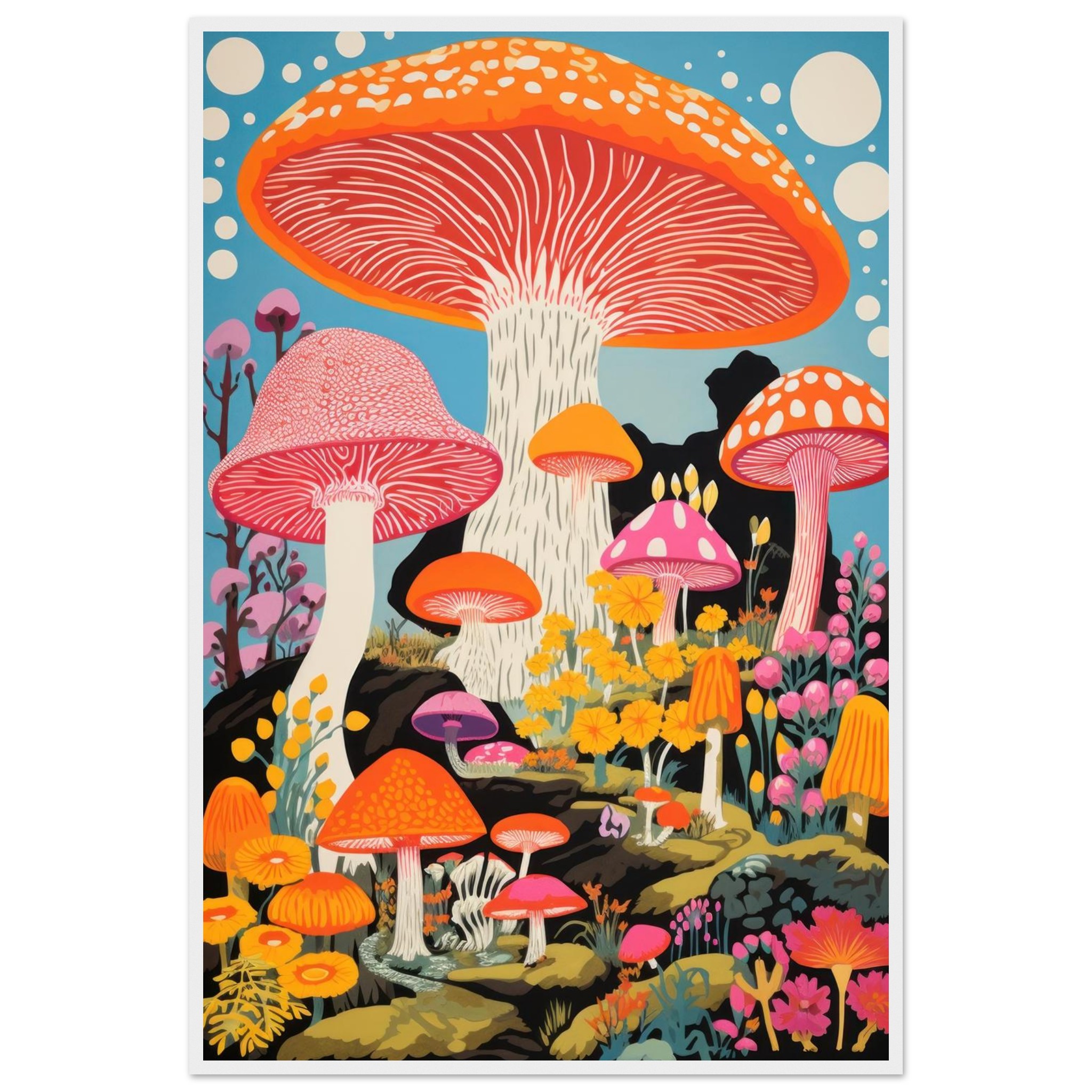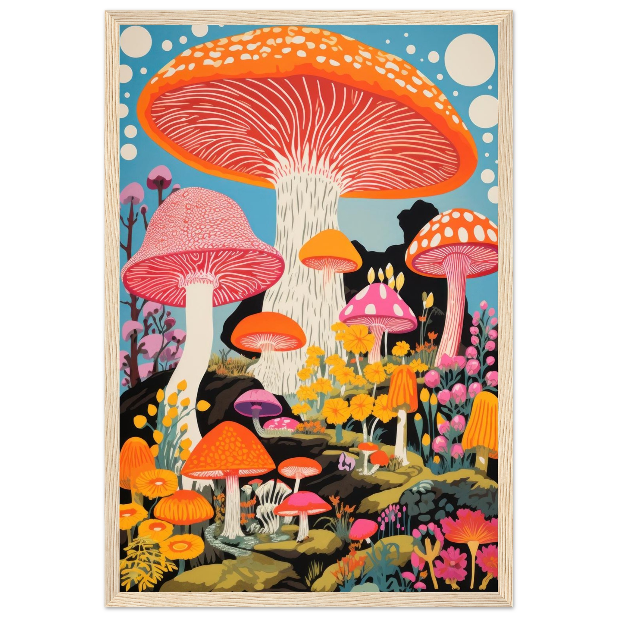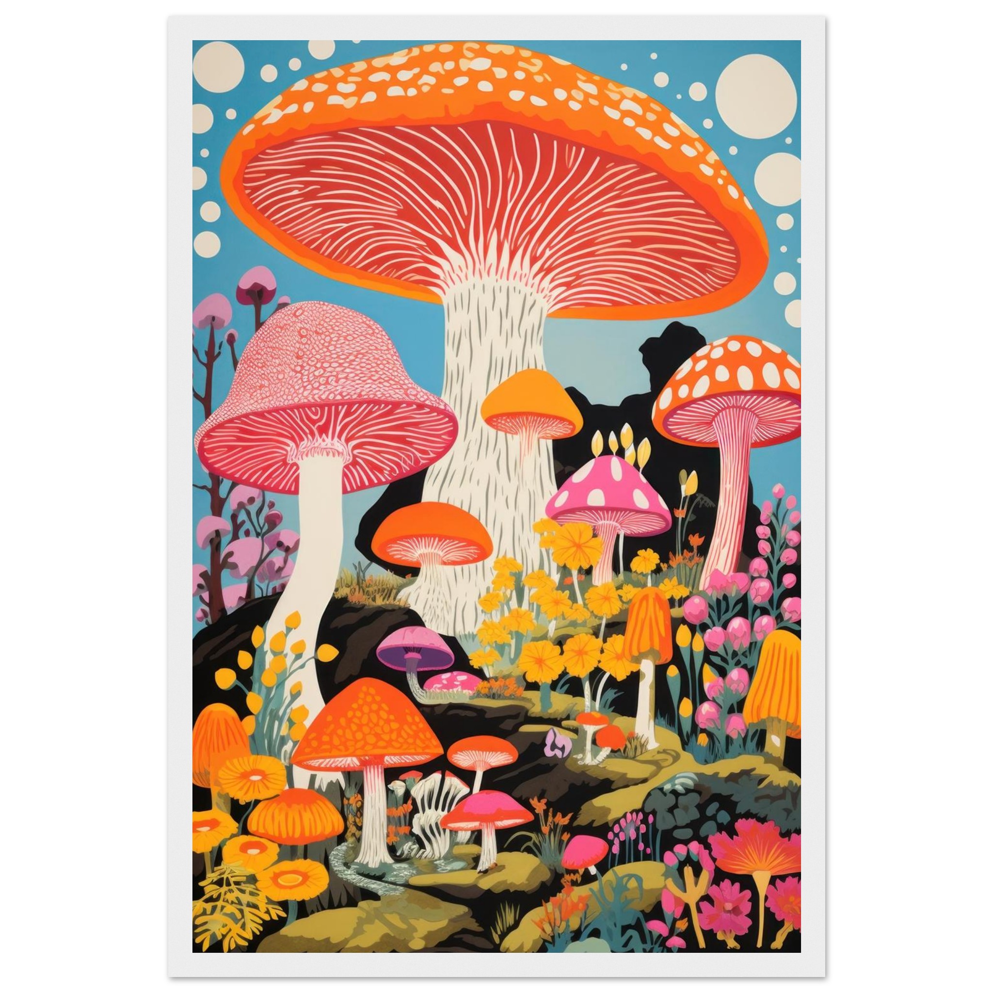Vibrant Mushroom Wonderland Framed Poster - Classic Matte Paper Art Print for Whimsical Decor
