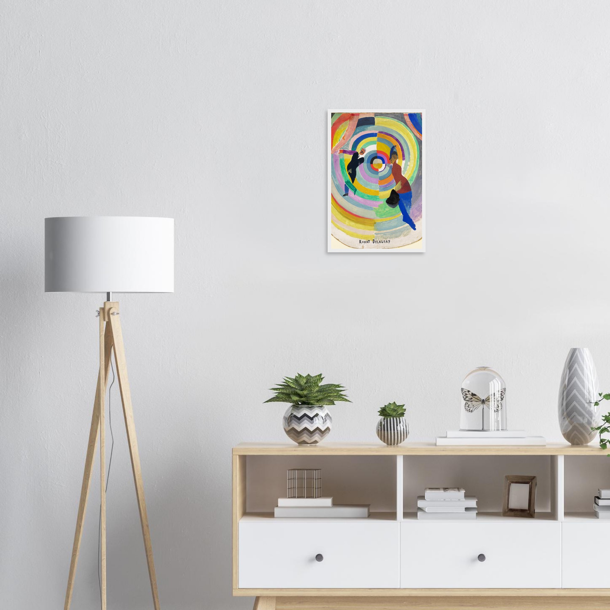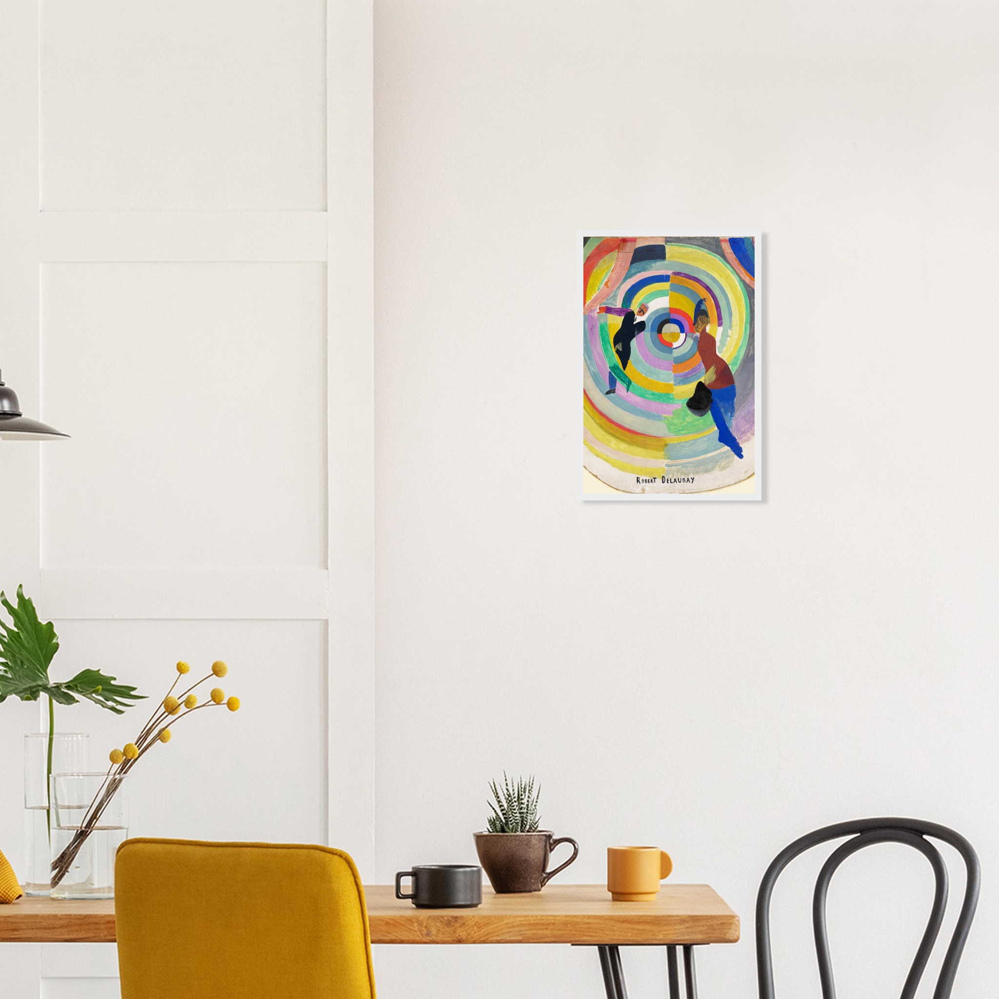 Immerse yourself in the dynamic world of Orphism with this captivating framed poster, inspired by Robert Delaunay’s iconic style. Featuring a kaleidoscope of vibrant concentric circles and abstract figures, this piece embodies a celebration of color and light, bringing an energetic and sophisticated focal point to any room. It’s more than just a poster; it’s an invitation to experience art that moves with you.