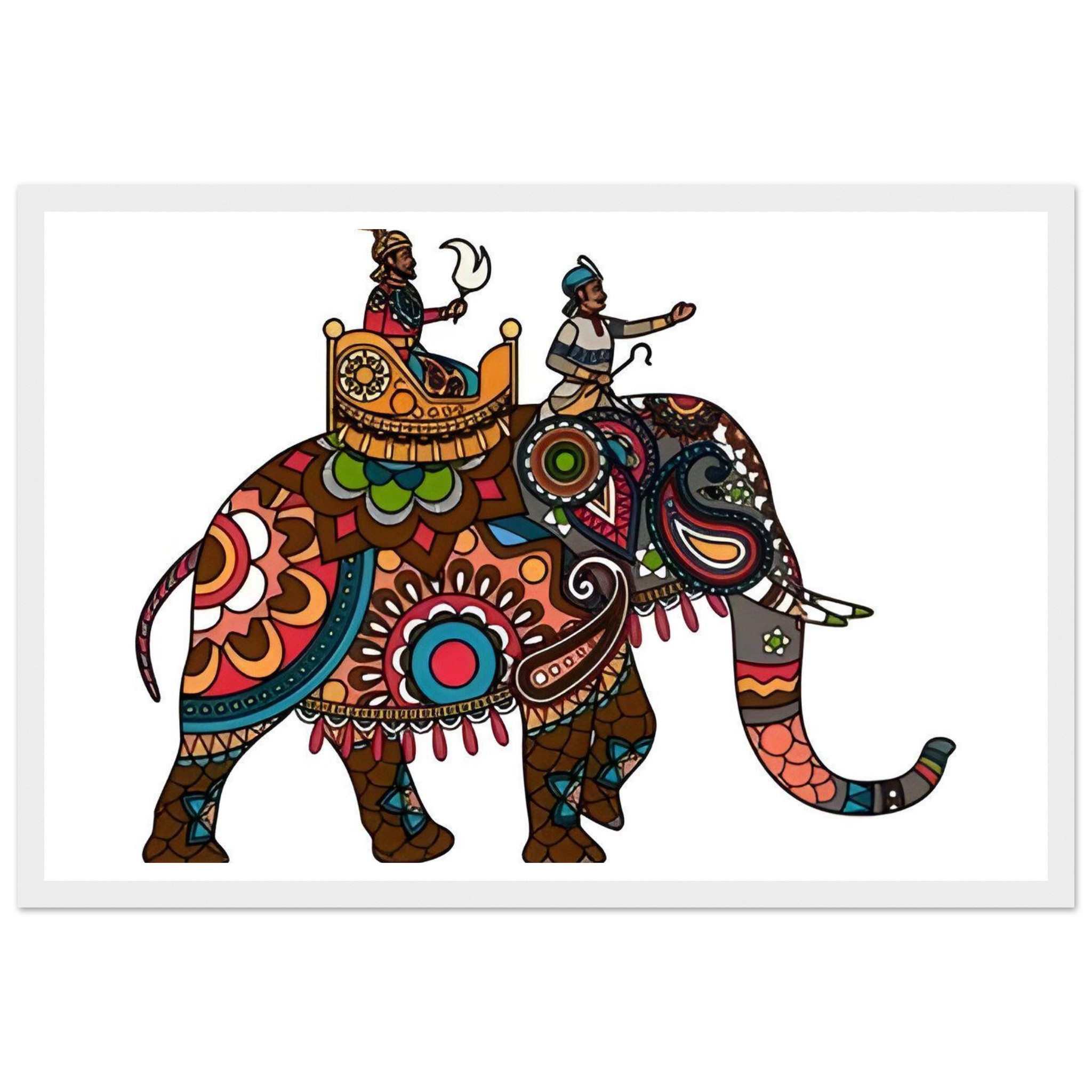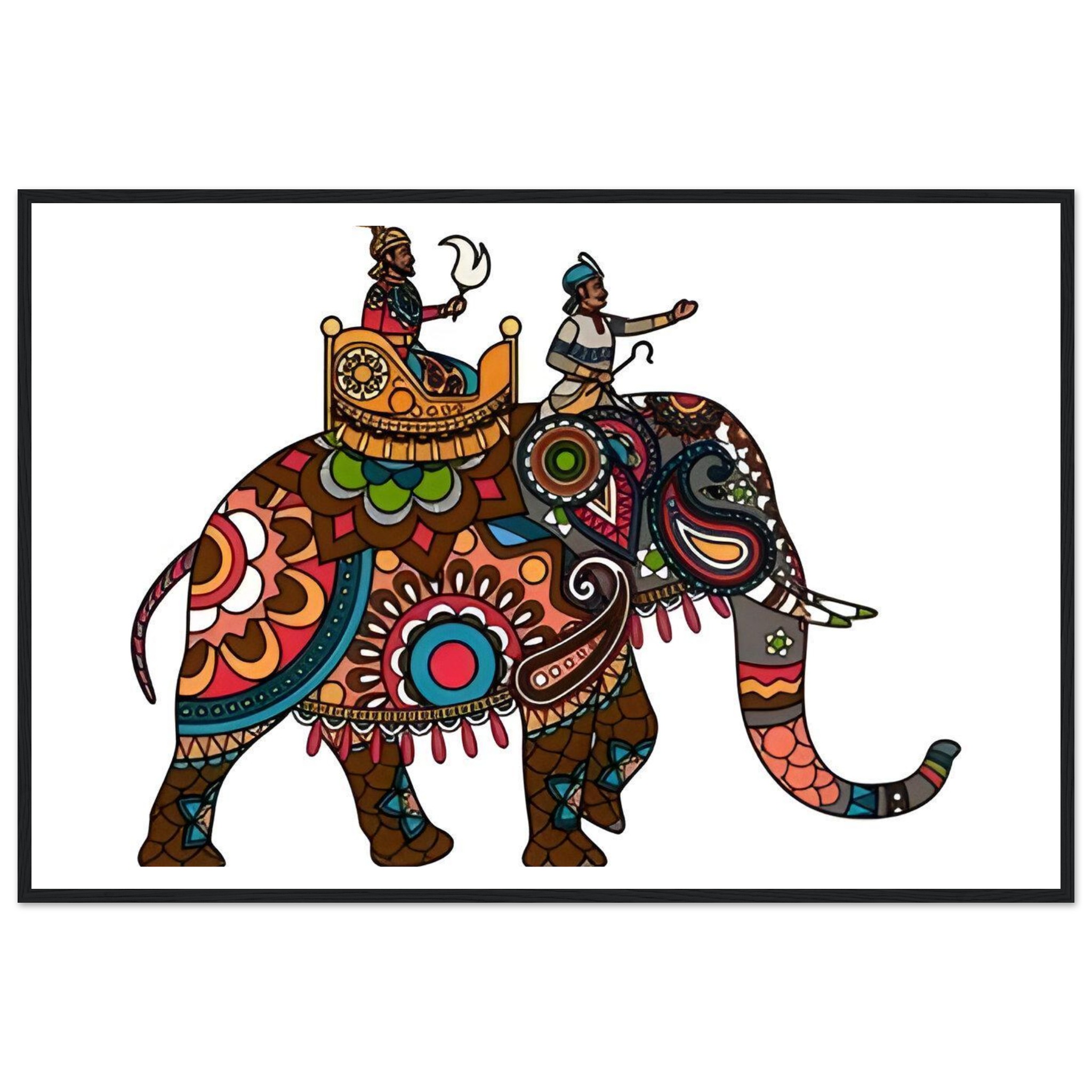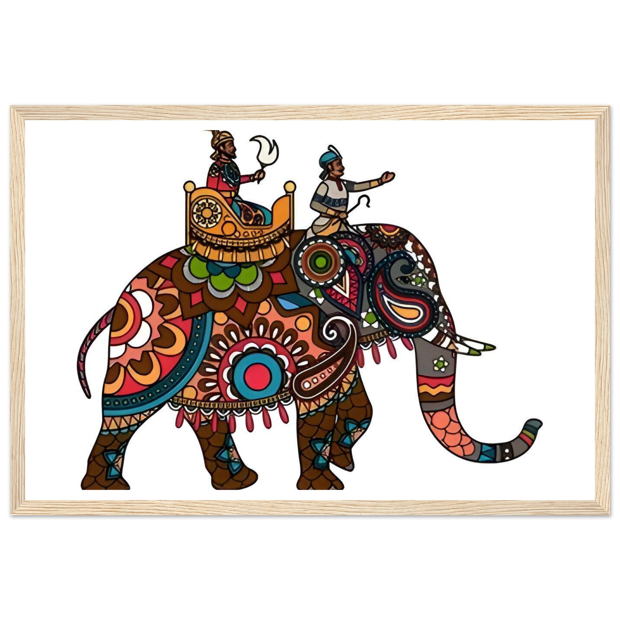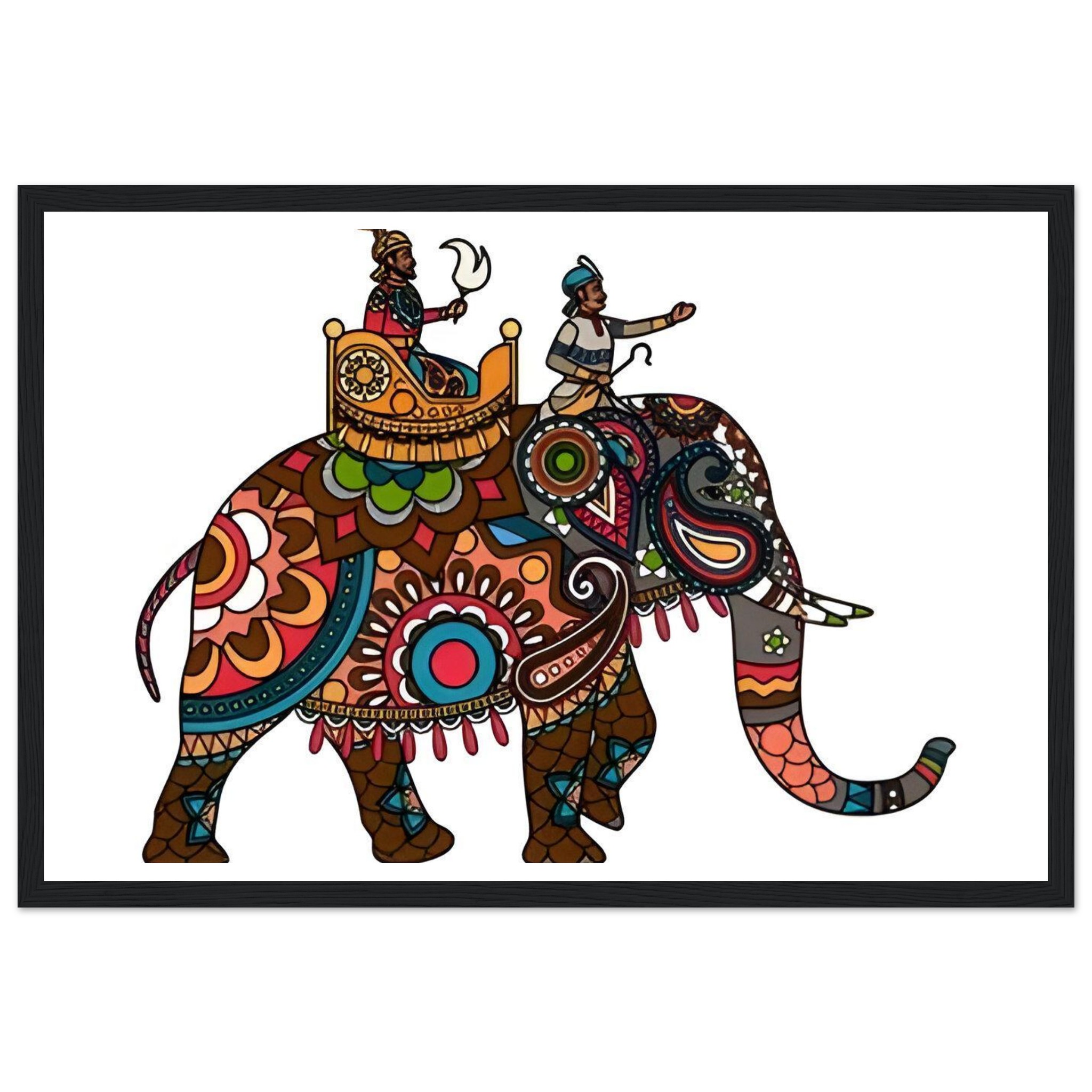 Vibrant Royal Elephant Journey – Matte Paper Wooden Framed Poster, in Your Choice of Frame & Size