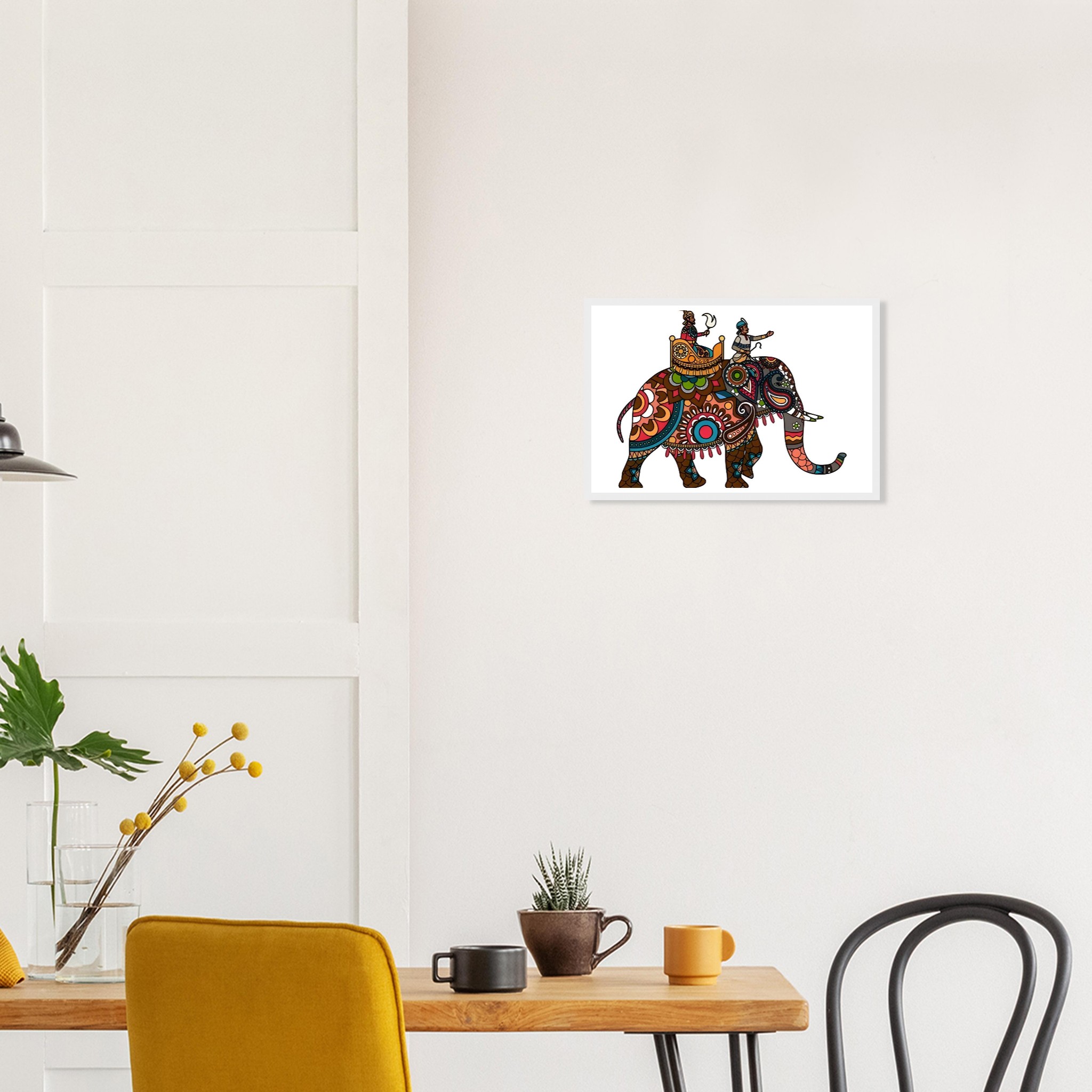 Embark on a visual journey with our “Vibrant Royal Elephant” framed poster, a celebration of rich cultural artistry and intricate detail. This stunning piece captures the majesty of an elaborately adorned elephant, guided by its riders, all brought to life with a captivating palette of warm earthy tones, deep teals, and fiery oranges. Its intricate patterns and regal mood will infuse your space with a sense of adventure and exotic elegance, making it a perfect centerpiece for any room seeking a touch of global charm.