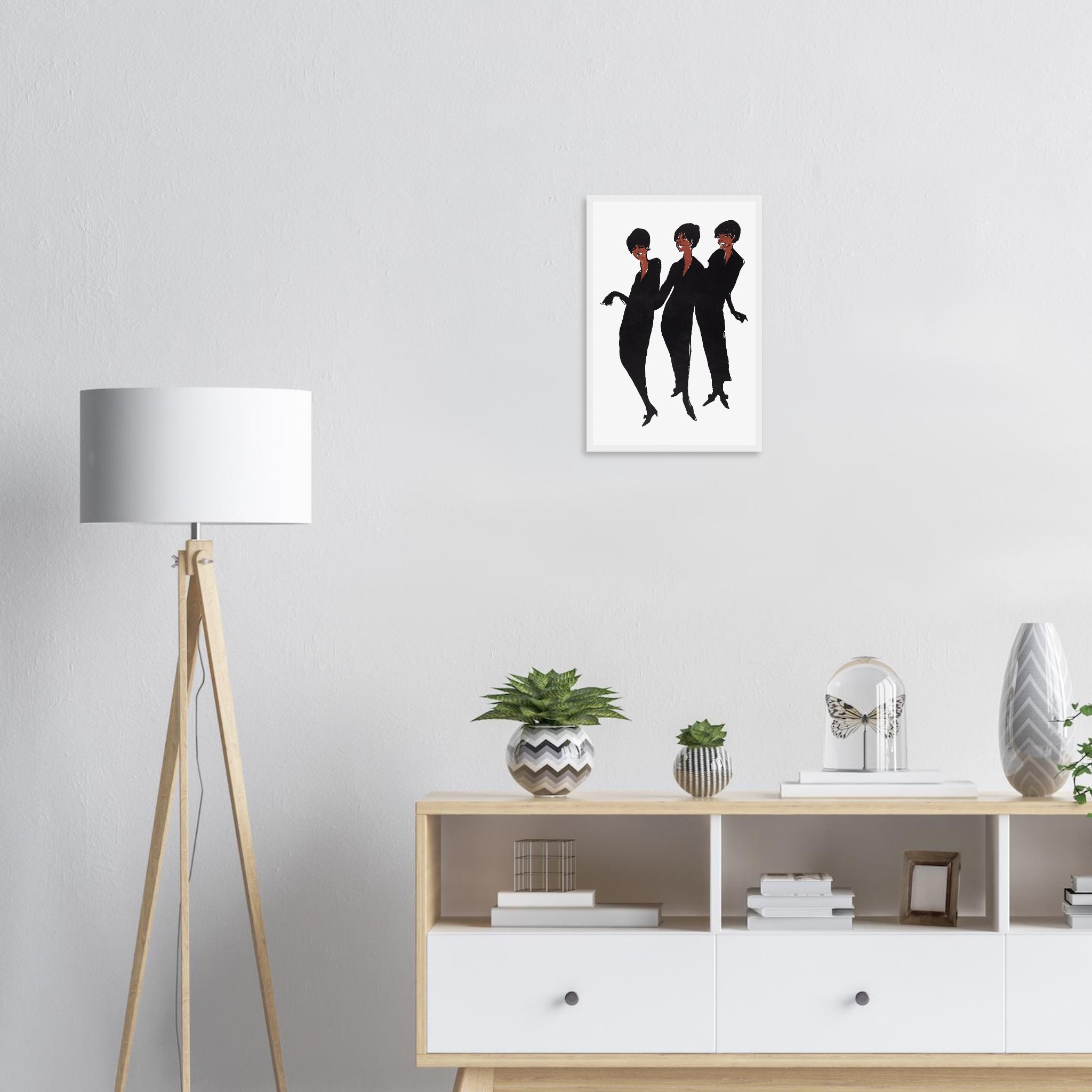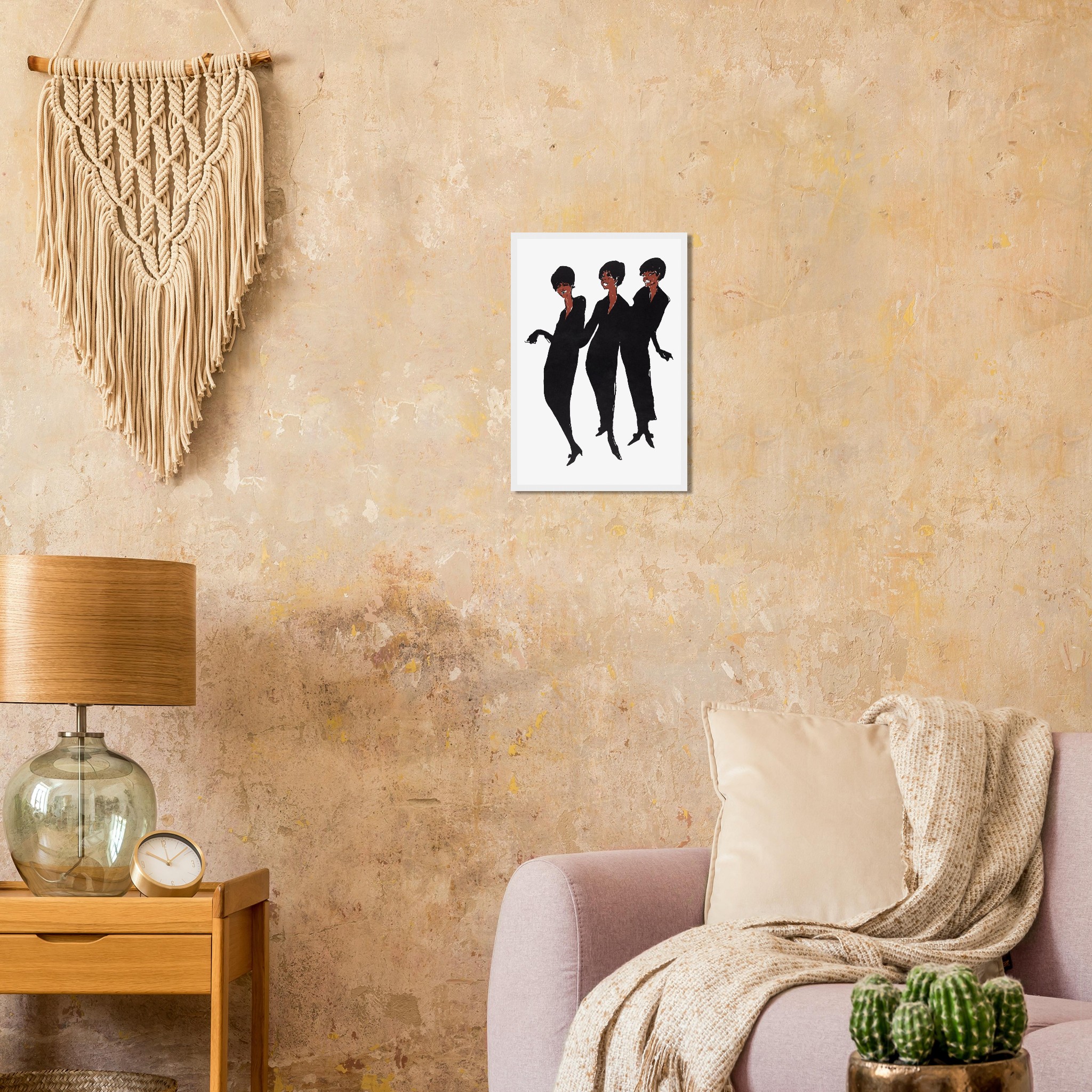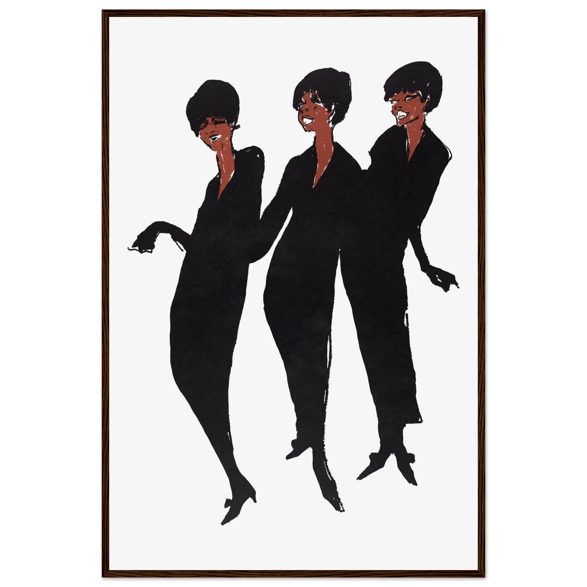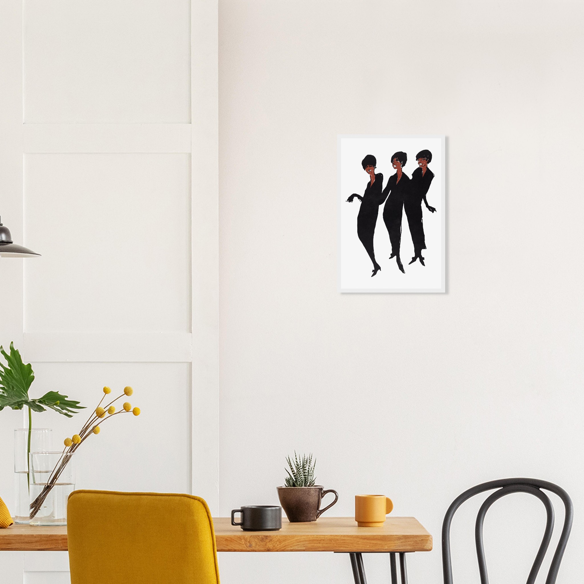 Bring a touch of classic sophistication and vibrant energy to your space with our ‘Vibrant Soulful Singers’ framed poster. This captivating artwork, reminiscent of iconic musical eras, features elegant figures exuding joy and rhythm. The minimalist black and rich brown palette creates a striking visual that’s perfect for anyone who appreciates art with a soulful beat.