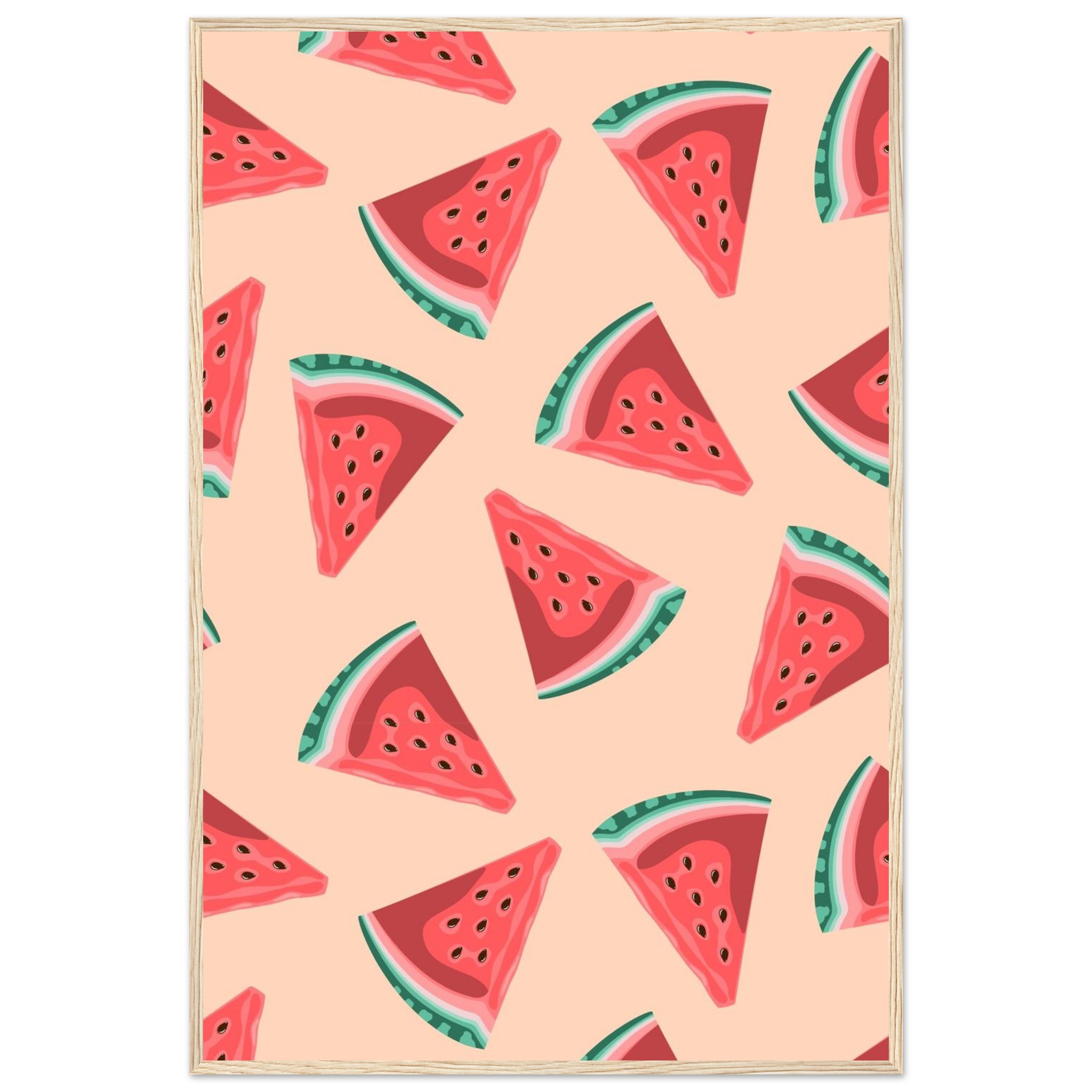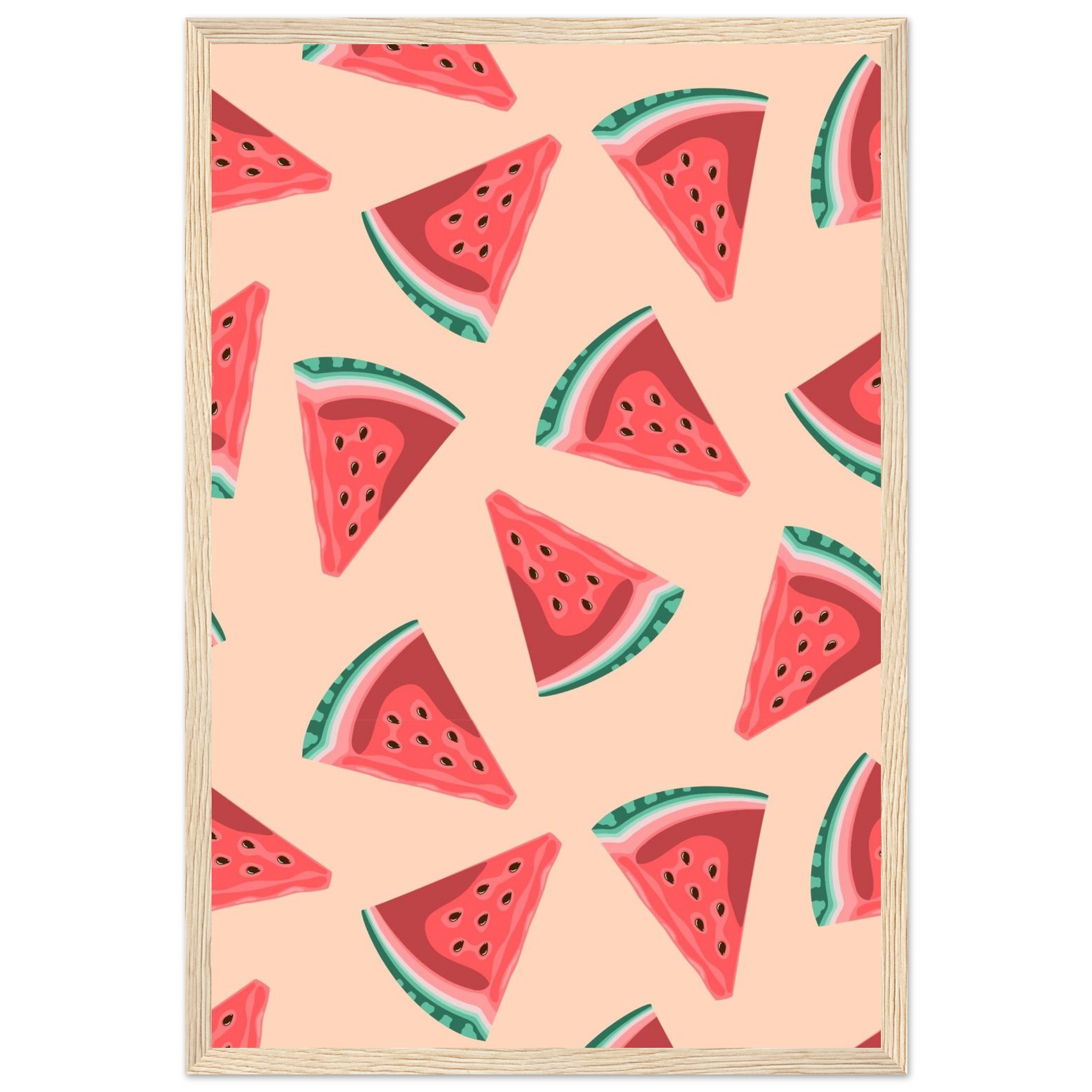 Vibrant Watermelon Slice Pattern Framed Poster – Classic Matte Paper Art for Any Room