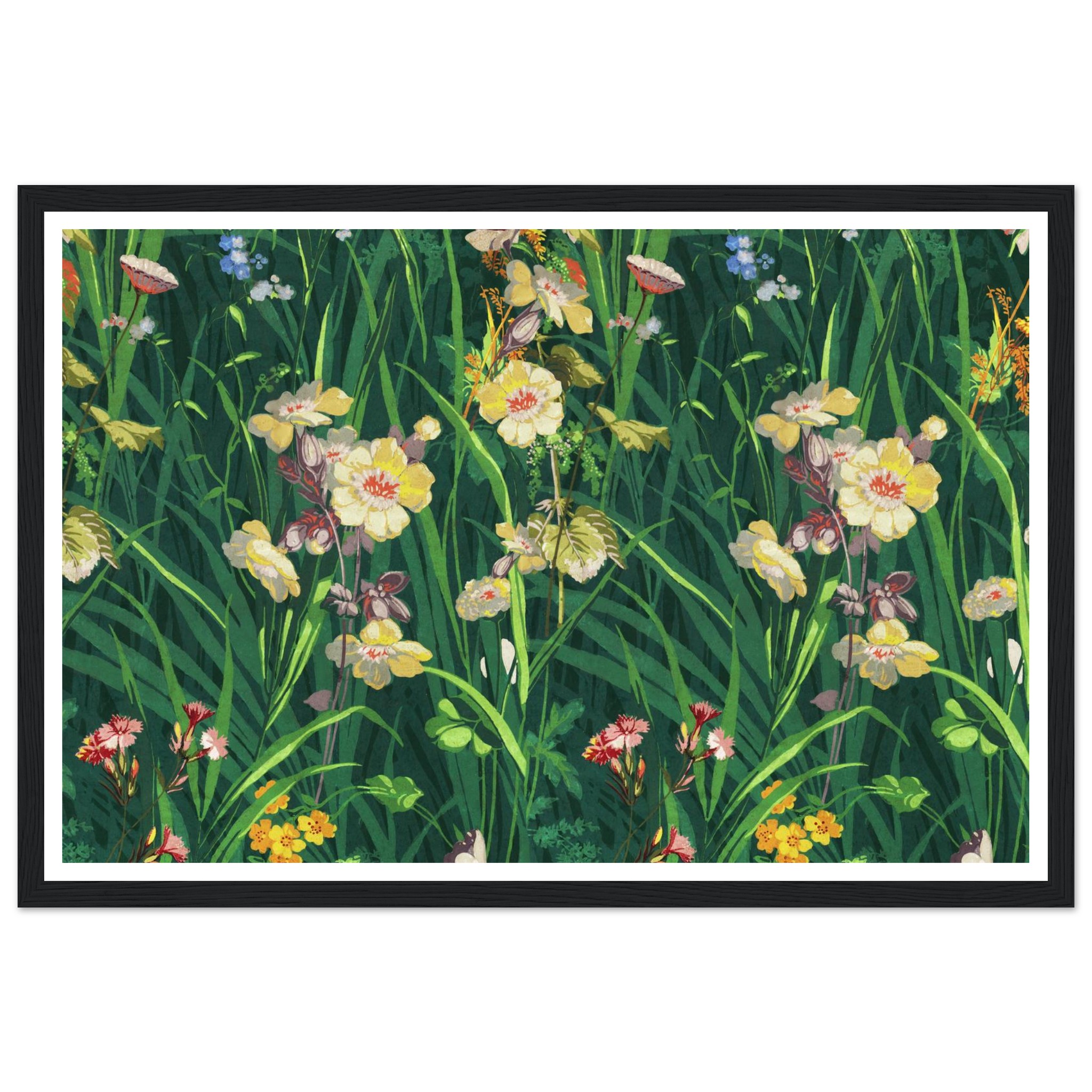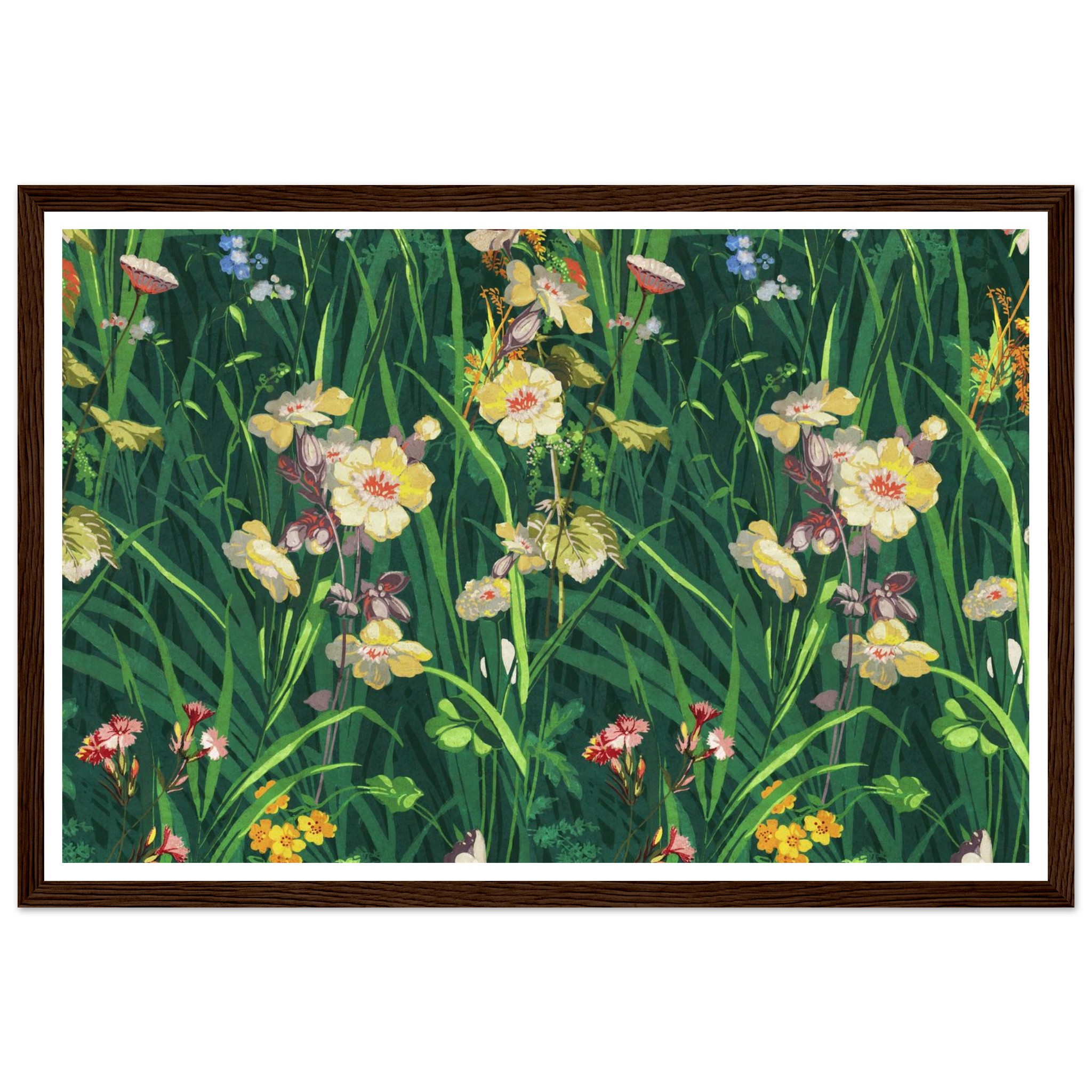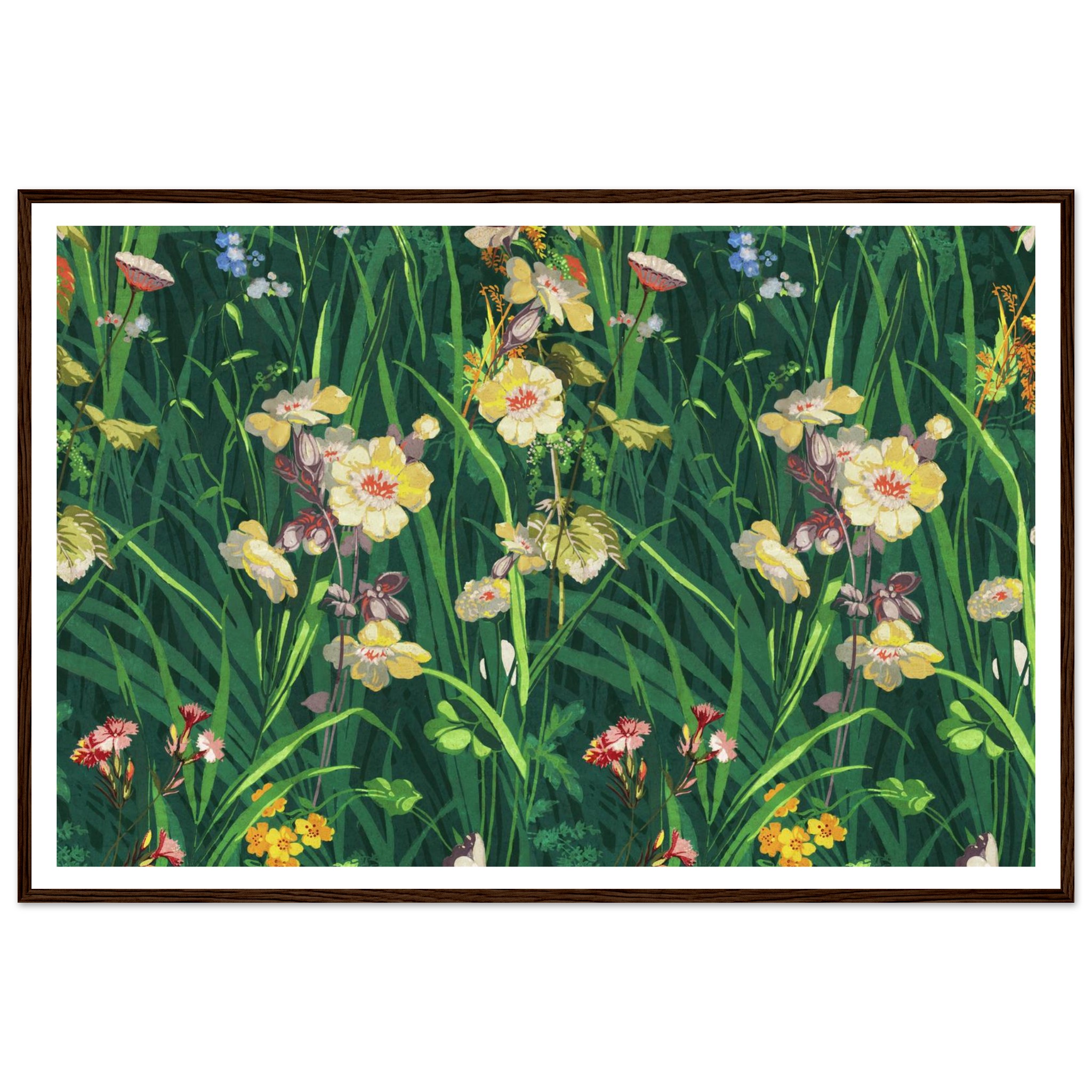 Vibrant Woodland Bloom Framed Poster – Lush Floral Art Print with Elegant Wood Frames
