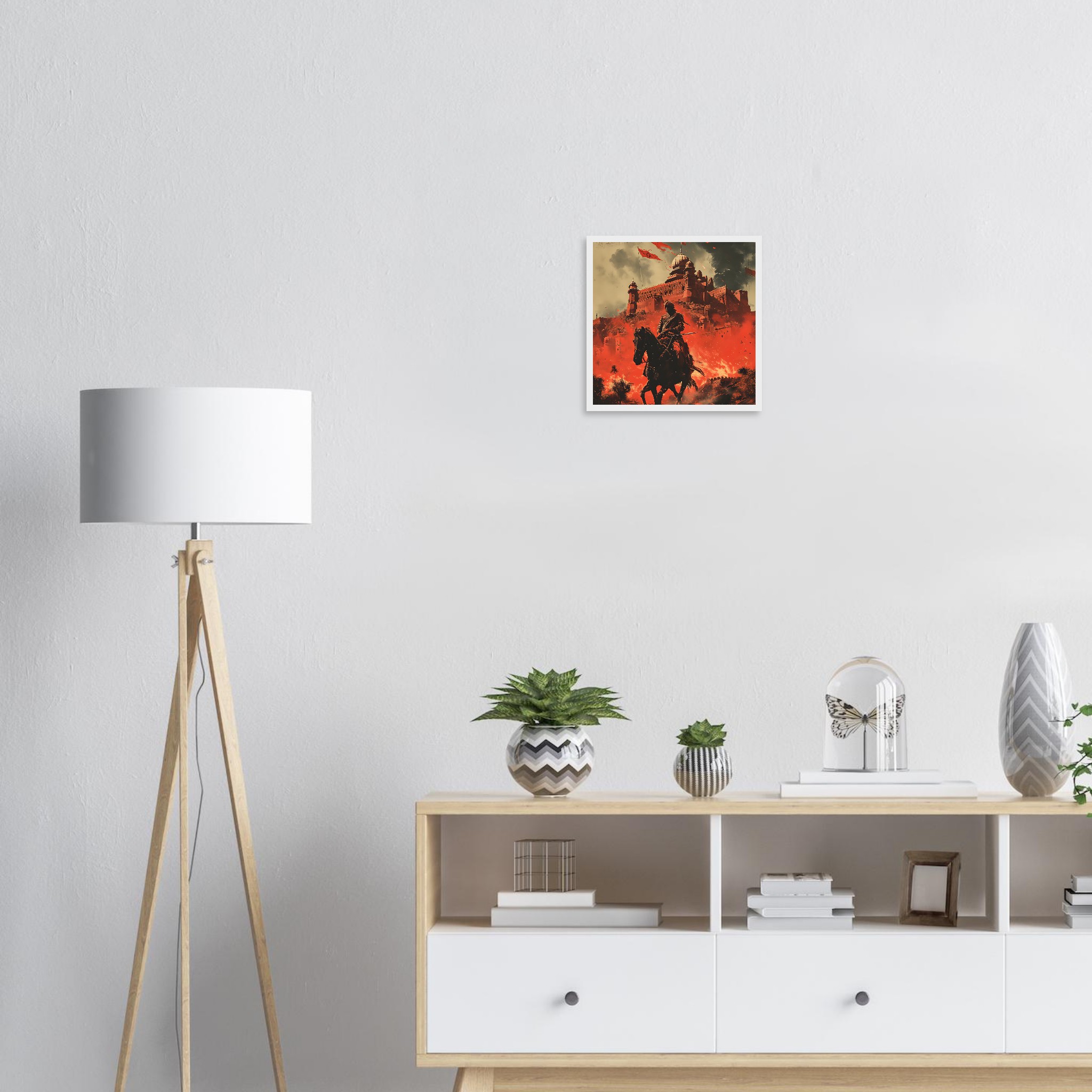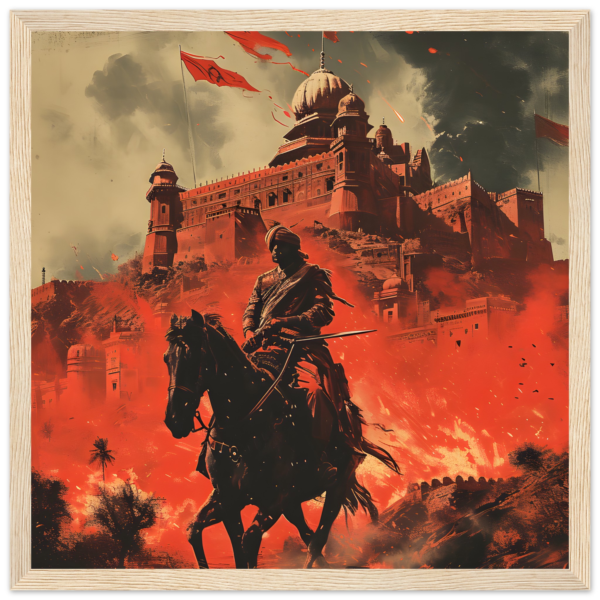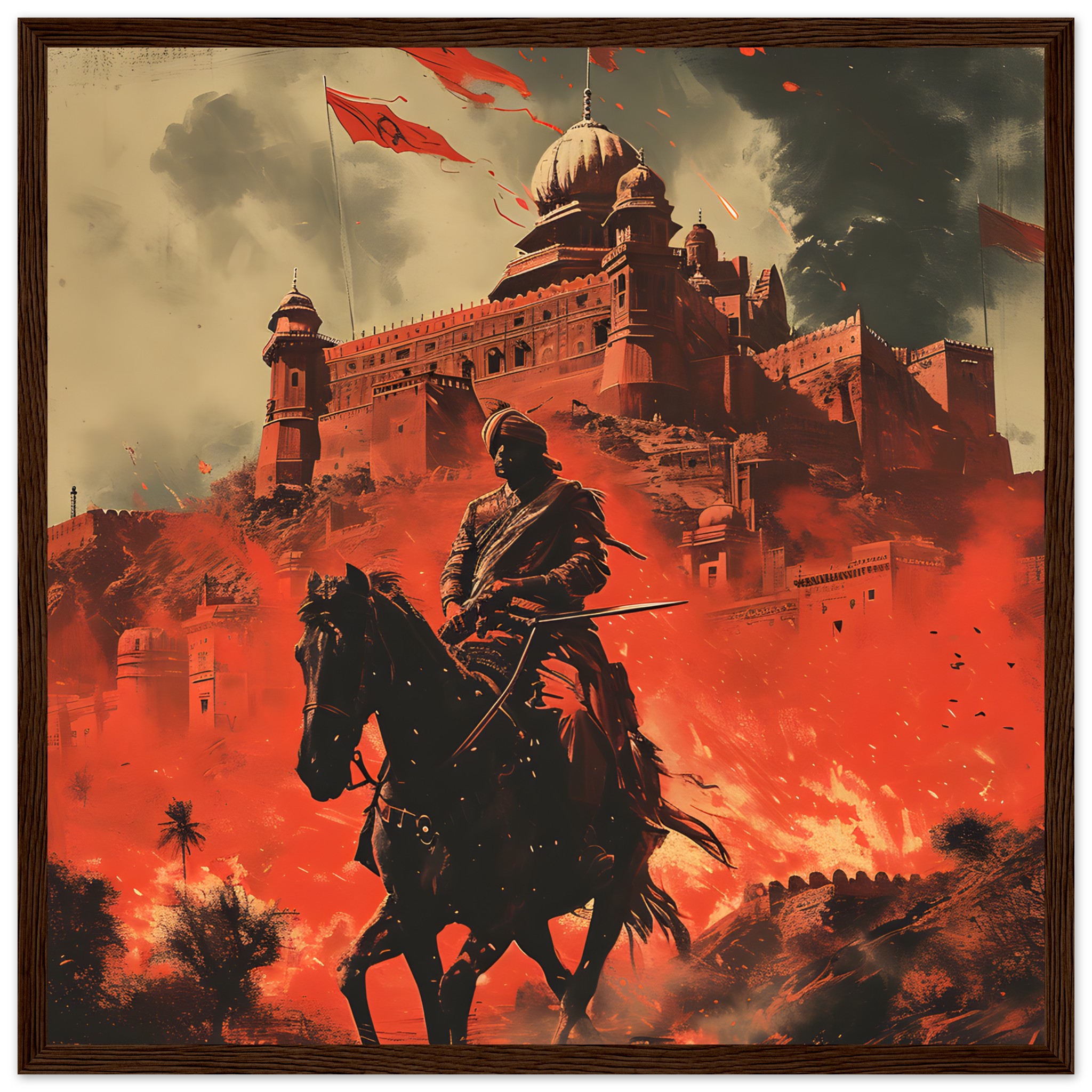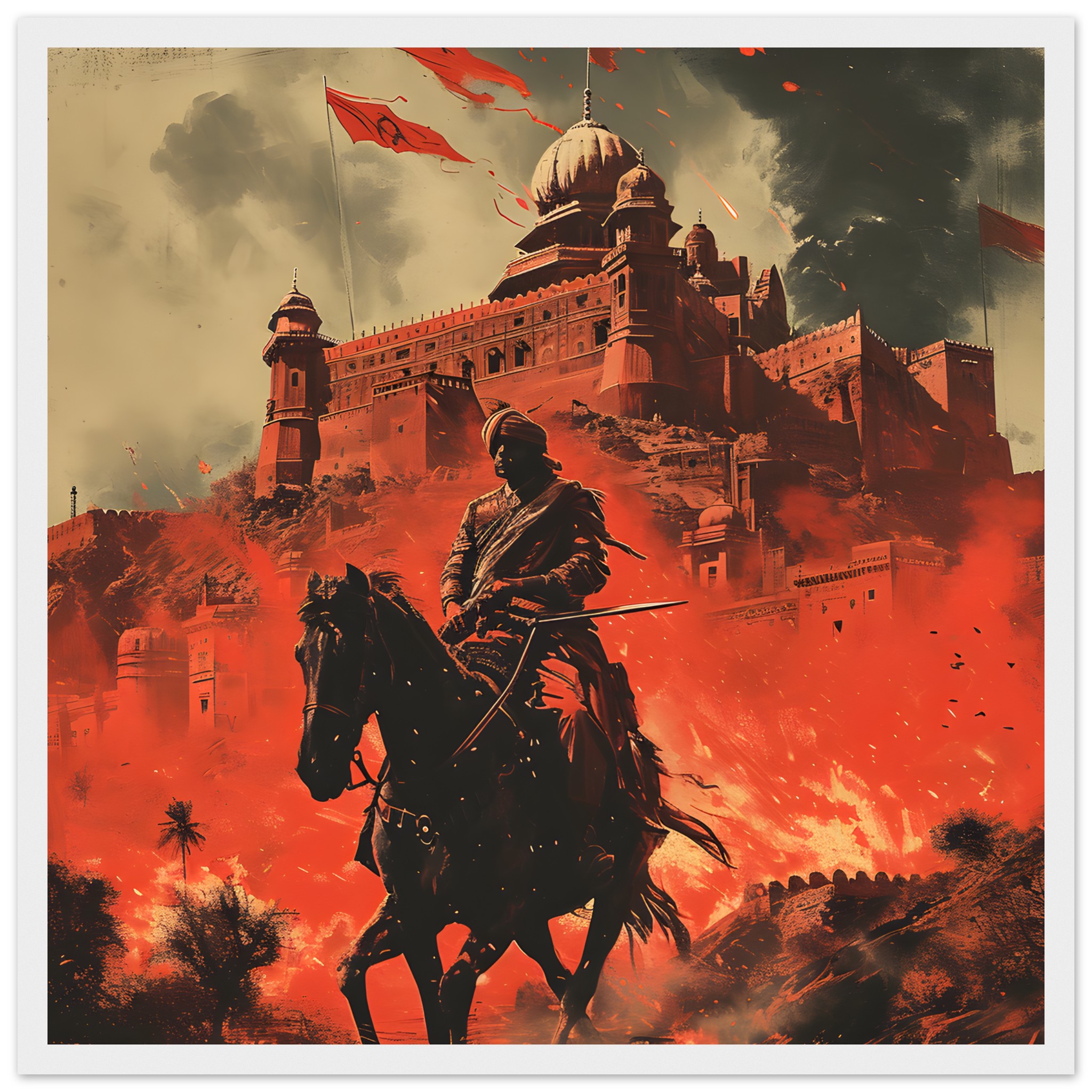 No minimum orders, printed and shipped on demand. Elevate your space with this breathtaking depiction of strength and heritage—choose your ideal size and frame, and order your ‘Warrior’s Valor: Red Citadel’ poster today!